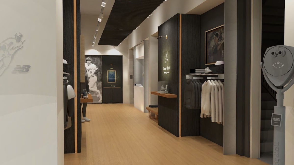 エントランスには、スポーツやカルチャーイベントを柔軟に展開できるステージを配置。最新アイテムが並ぶほか、大谷翔平のシグネチャーコレクション「The Ohtani Signature Collection」の展示エリアも設けられ、シグネチャーロゴの背景や直筆サイン入りアイテムも鑑賞可能となる。