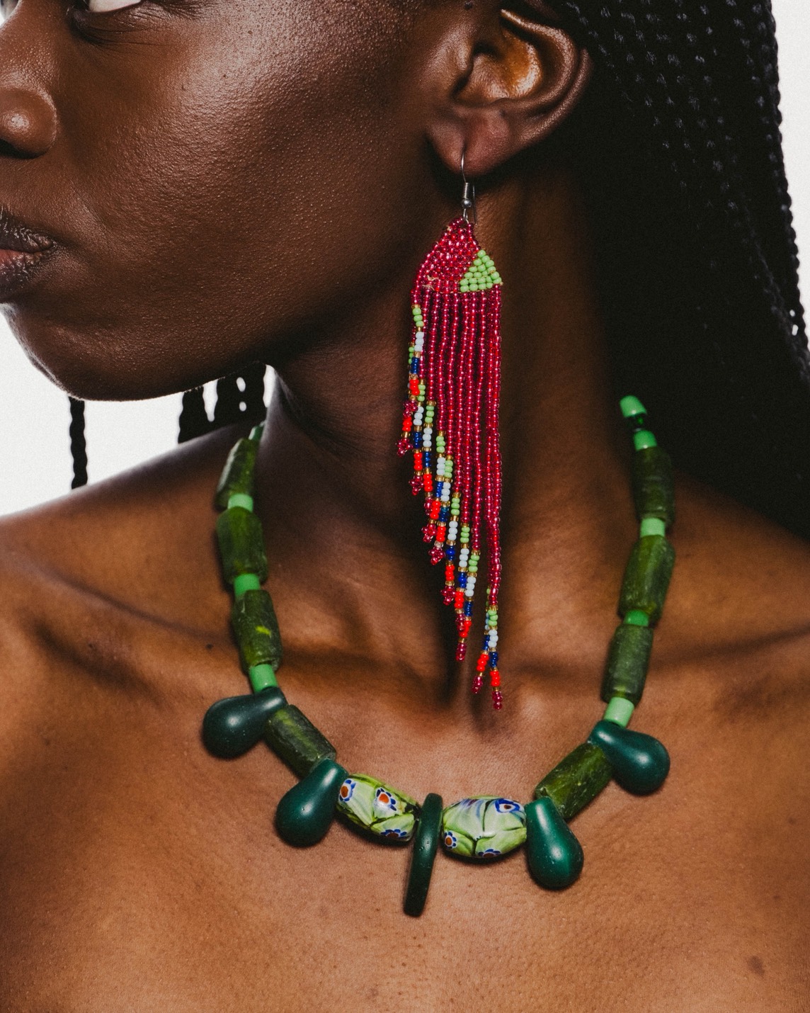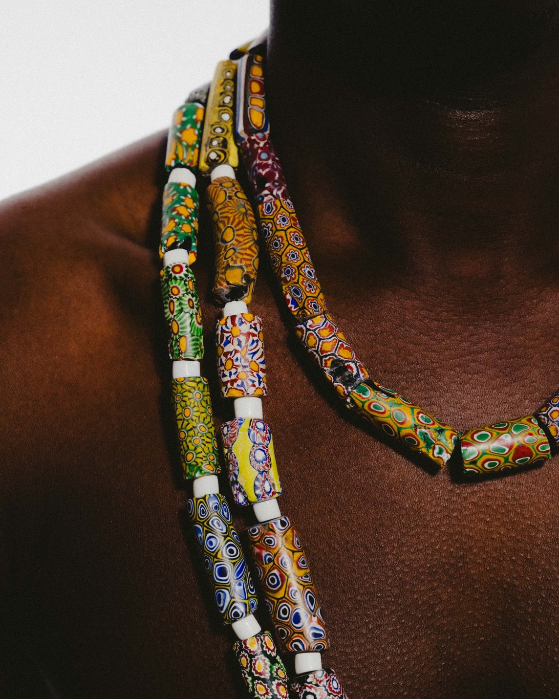 本展はアフロテイストを軸に独自の表現を展開するファッションブランドのLamrof(ラムロフ)、そしてアフリカンアンティーク素材を用いたジュエリーブランドのAfrogical Jewelry(アフロジカルジュエリー)を手がけるファッションデザイナー・坂本大輔による企画となっている。