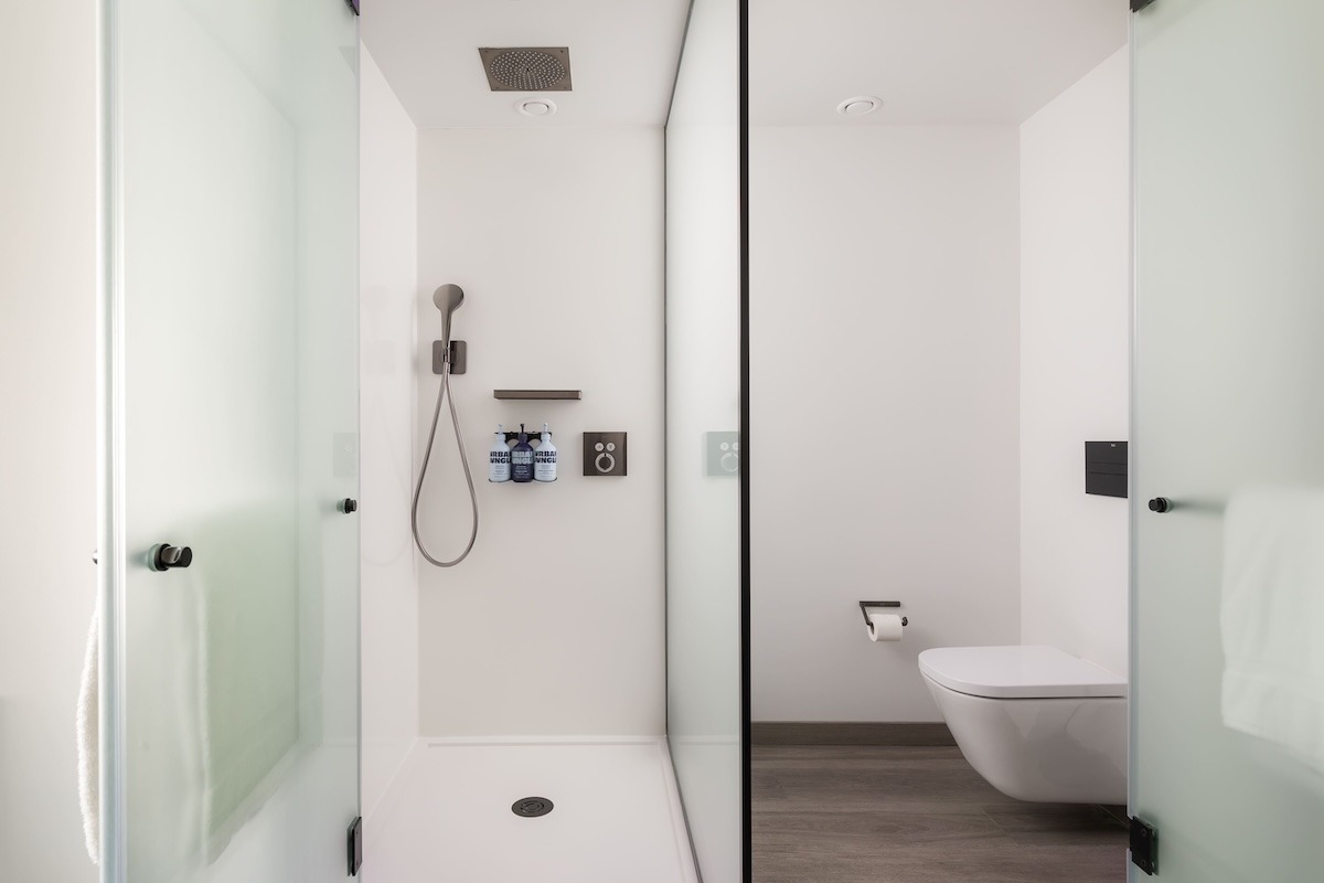 その中でも特に印象的だったのが、「YOTEL」の代名詞とも言えるSmartBed™。ボタンひとつでリクライニングできるため、寝る直前までお気に入りの映画や動画を満喫するのも、滞在中のささやかな楽しみになる。さらに高速WiFiやワイヤレス充電、レインシャワーはもちろん、24時間利用できるジムまで、滞在に求められる要素がとにかく”ちょうどよく”揃う。この満足感こそが、この空間における最大の魅力かもしれない。