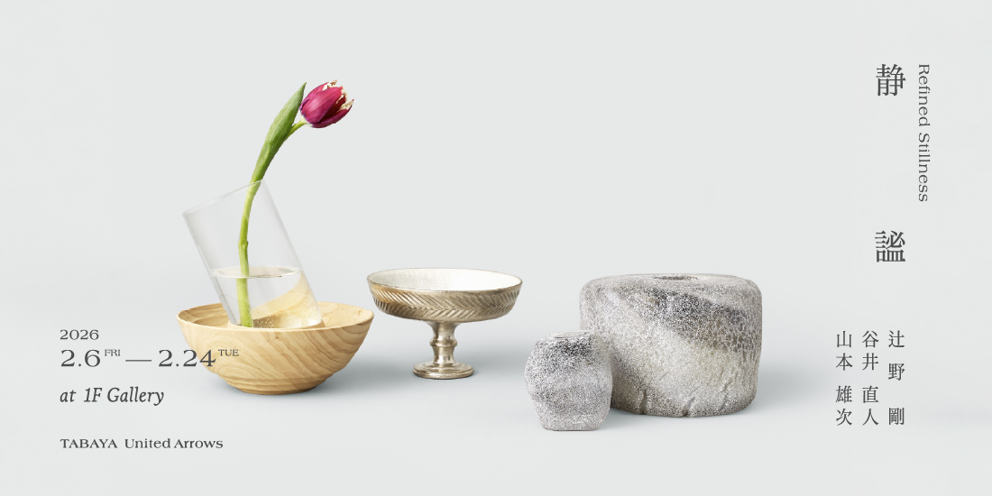 「TABAYA United Arrows(タバヤ ユナイテッドアローズ)」が、日本の作家3名による合同展『Refined Stillness 静謐』を、2026年2月6日(金)〜24日(火)に開催する。