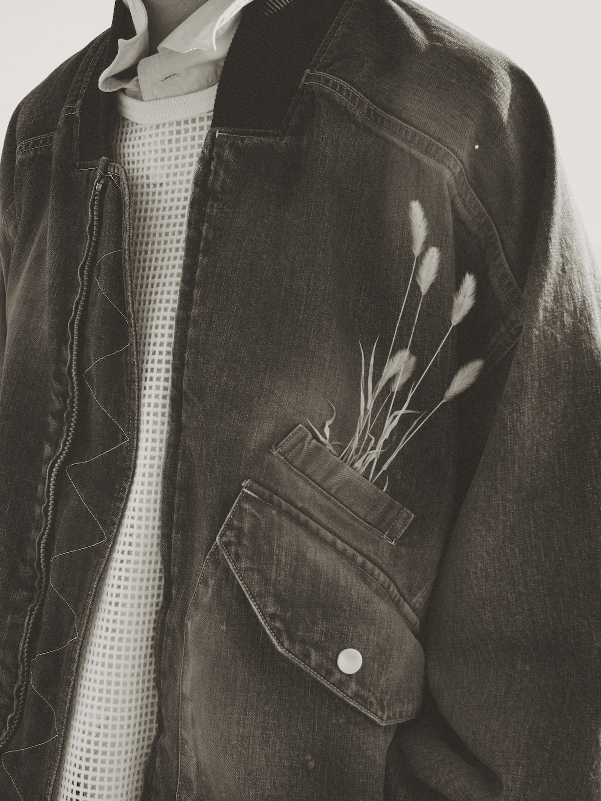 カウレザーで製作したYOKE(ヨーク)とのコラボレーションによるCUT OFF HALF COATをはじめ、デニムでアレンジしたBOMBER JACKET、仙台のセレクトショップ「Attic(アティック)」の10周年を祝うブルゾン、現代的なサイズ感にアップデートしたレイヤードジップフーディが揃う。