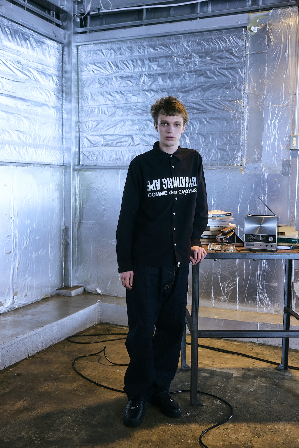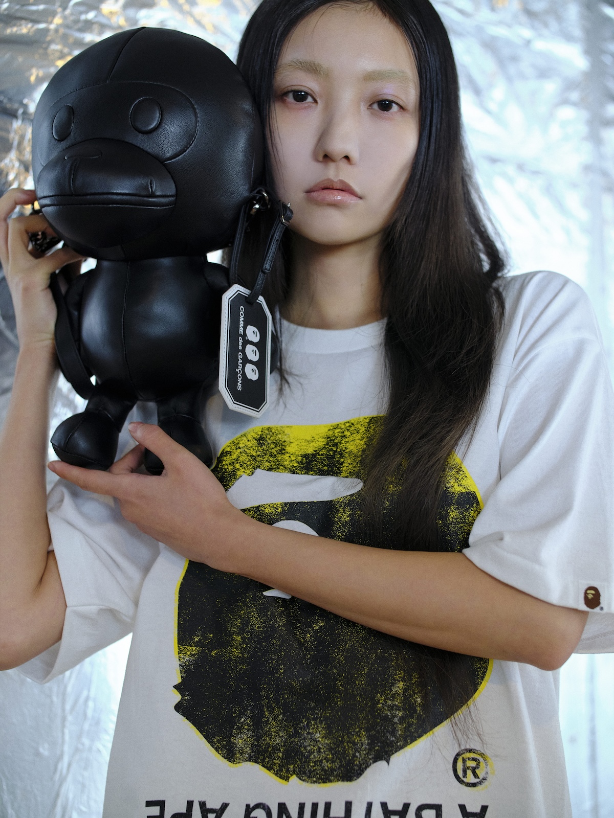長年にわたり独自の表現でファッションシーンを牽引してきた両者による本企画は、「コム デ ギャルソン大阪店」内のショップインショップである「BAPE STORE® コム デ ギャルソン大阪」限定で販売する。