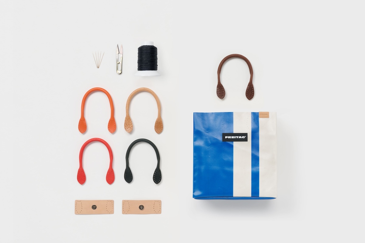 二次創作”をテーマに2023年に始動した本プロジェクトは、使用済みトラックタープを再利用するFREITAGと、副資材レザーを創造的に再構築するHender Schemeによる、ものづくりにおける哲学を共有する両者が、アップサイクルを超えた「創作の循環」を提示している。