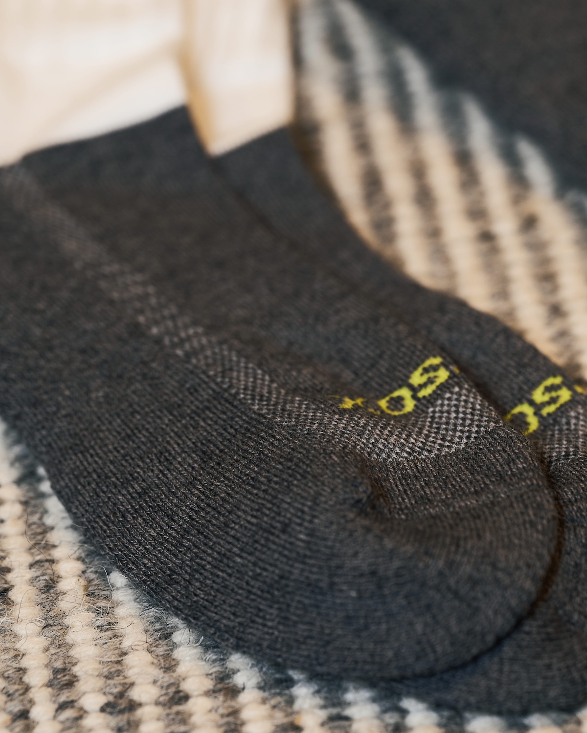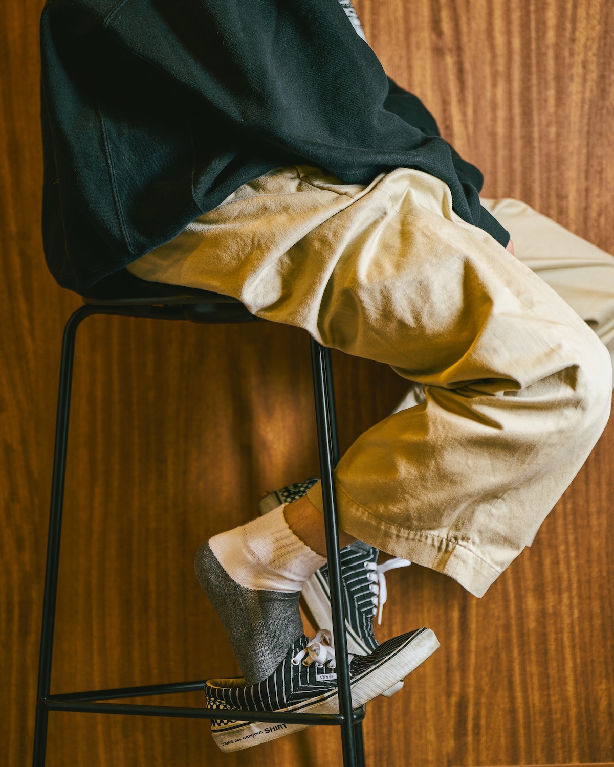 新たにリリースされるカラーブロック・ツートーンソックスは、足元部分を濃い杢グレーに切り替えることで、シューズ摩擦による汚れや毛玉、ほこりが目立ちにくい設計にアップデート。