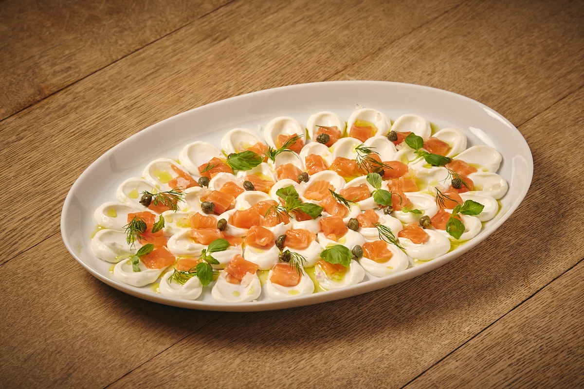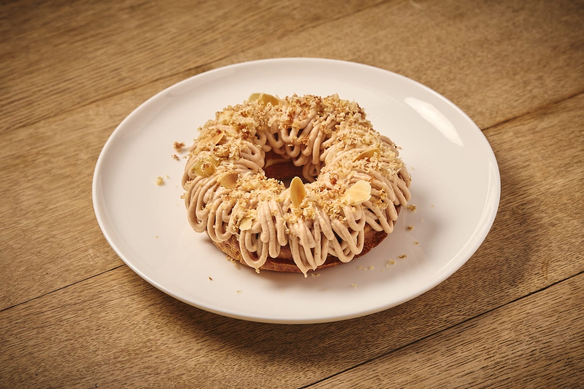 料理も本格的なビストロメニューへと刷新。前菜には、花びらのように並べたクリームチーズにスモークサーモンを重ねた一皿や、数量限定のテリーヌを用意。魚料理には「白子と白ネギのグラタン」、肉料理には「鴨胸肉のロースト シェリービネガーソース」など、会話に寄り添う構成で揃える。デザートには、フランス産栗のモンブランクリームを絞った「モンブラン パリ・ブレスト」など、余韻を大切にした甘味をラインナップする。